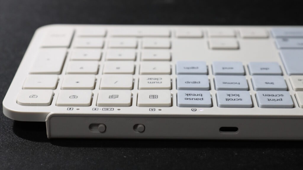一般的なパンタグラフタイプのキースイッチの1.5mm程度のストロークですが、適切な機構によりしっかりしたタイプ感を持つ製品に仕上がっています。